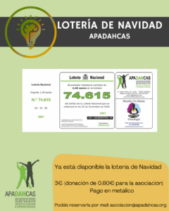 Un año más, desde Apadahcas ponemos a disposición de todas las personas socias, familiares y amistades nuestra Lotería de Navidad.