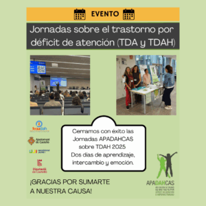 Las Jornadas organizadas por APADAHCAS sobre el Trastorno por Déficit de Atención con o sin Hiperactividad (TDAH), celebradas los días 18 y 25 de octubre de 2025 en la Universitat Jaume I de Castellón, concluyeron con una excelente acogida y una alta participación de familias, profesionales y estudiantes.